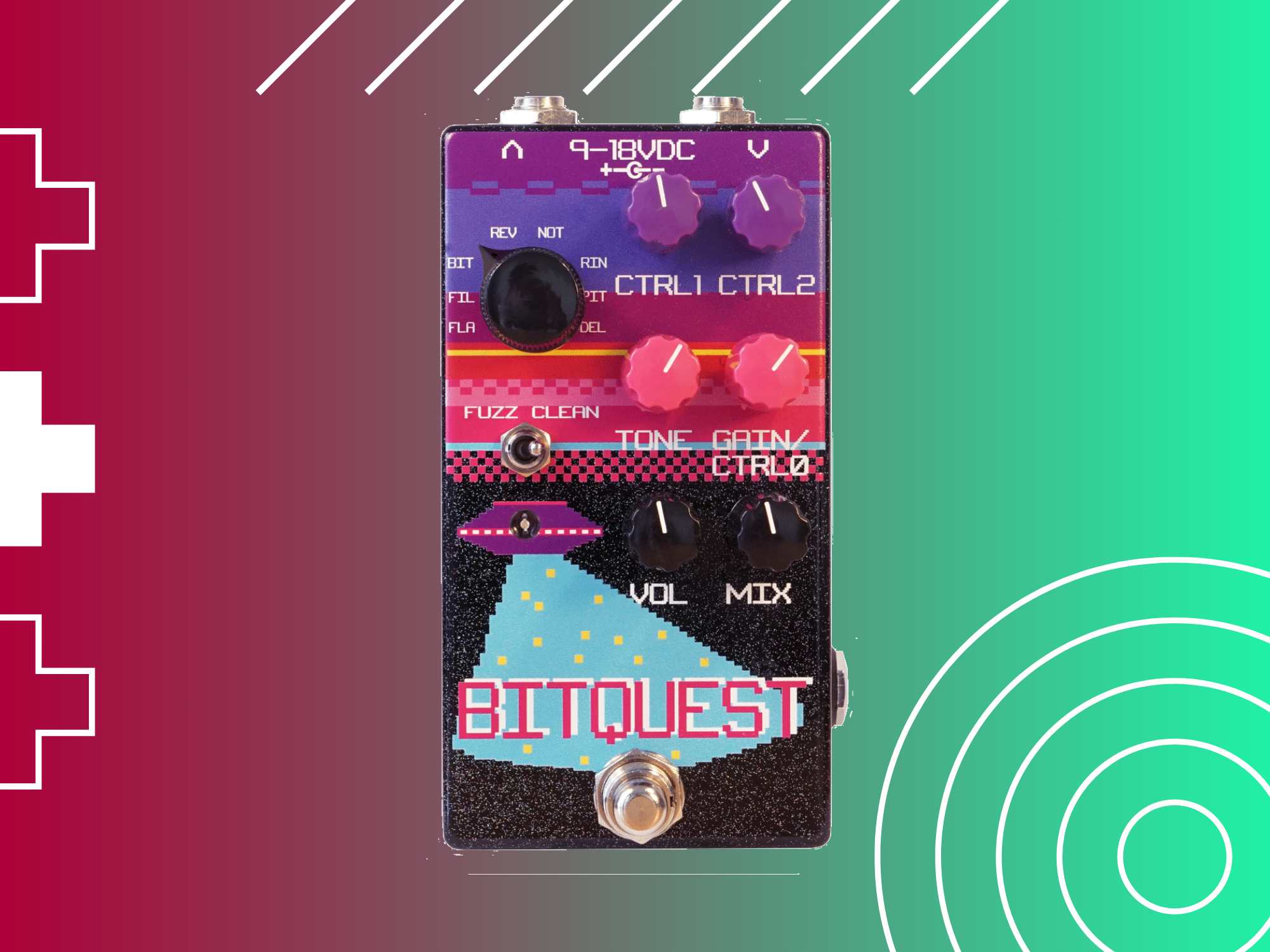 The most versatile pedal on this list, and right below 250$, is the BitQuest multi-effects pedal by Dr. Scientist. This one has quite a collection of digital effects, 8 to be exact, and a switch to go from Clean to Fuzz that adds even more dirt to your sound. The 8 modes have a flanger, high pass, and low pass filters, a bit crusher with sample rate reducer, an infinite reverb, a deep notch filter, a ring modulator with reverb, a +/- 1 octave pitch shifter, and a wild glitch delay. As you understand, BitQuest is capable of a ton of wildly different sounds. This pedal is really versatile and diverse, great for synthesizers, and the sounds youโre getting out of it are pretty unique while being quite straightforward to use once you get a hold of what the CTRL knobs are doing for each mode. Definitely a great bargain for such a deep pedal!