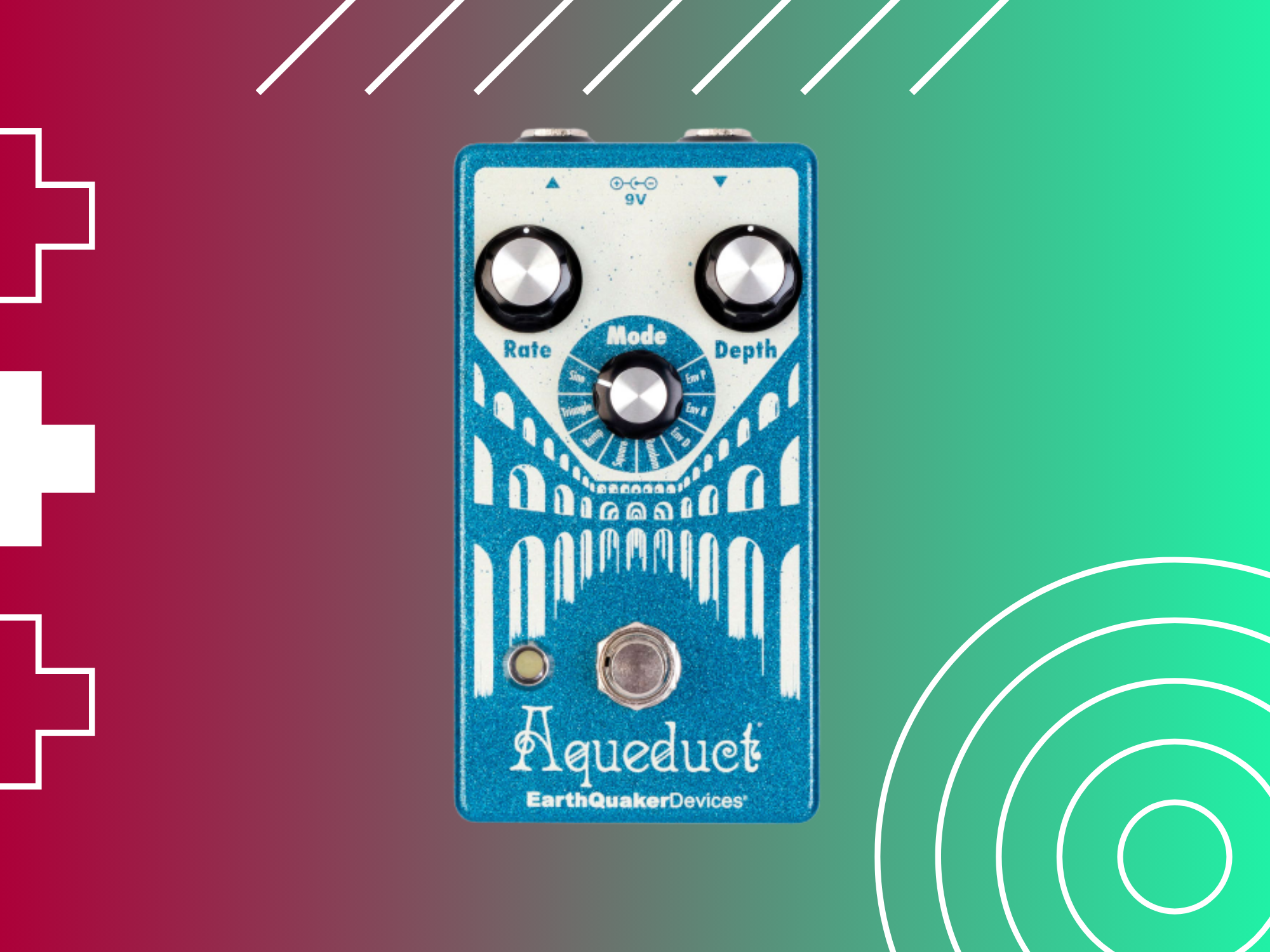 Aqueduct is a vibrato pedal with just two controls. Rate & Depth. But while thereโs not much to mess around with, it also has 8 distinct vibrato modes. From your typical selection of waveforms like Sine or Triangle to Envelope-controlled modes that respond to your playing and adjust the vibrato accordingly. This is a nice example of a single effect done well so if you love vibrato pedals, the Aqueduct is one of the best options out there mostly due to its great sound and flexibility. While still being the easiest to control.